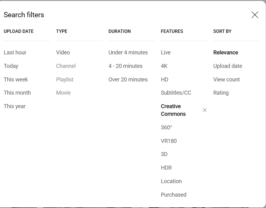 - You will see a popup that shows all the available filter options which YouTube provides.